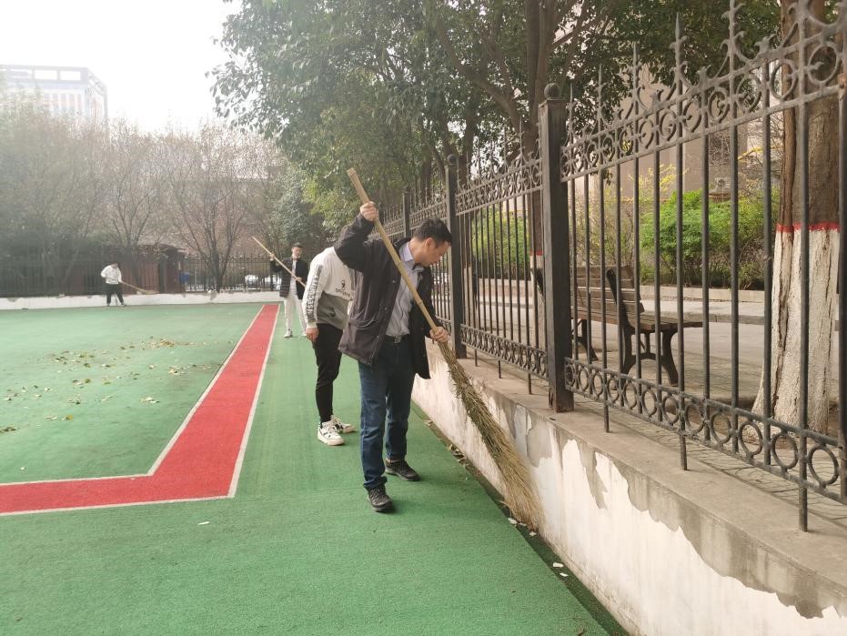 同一时间,部分同学前往离退休处进行义务劳动。在离退休处负责人的带领下,志愿者们分工合作,打扫了会议室,活动室以及户外活动等区域。看着自己的劳动成果,志愿者们内心的自豪与喜悦溢于言表。