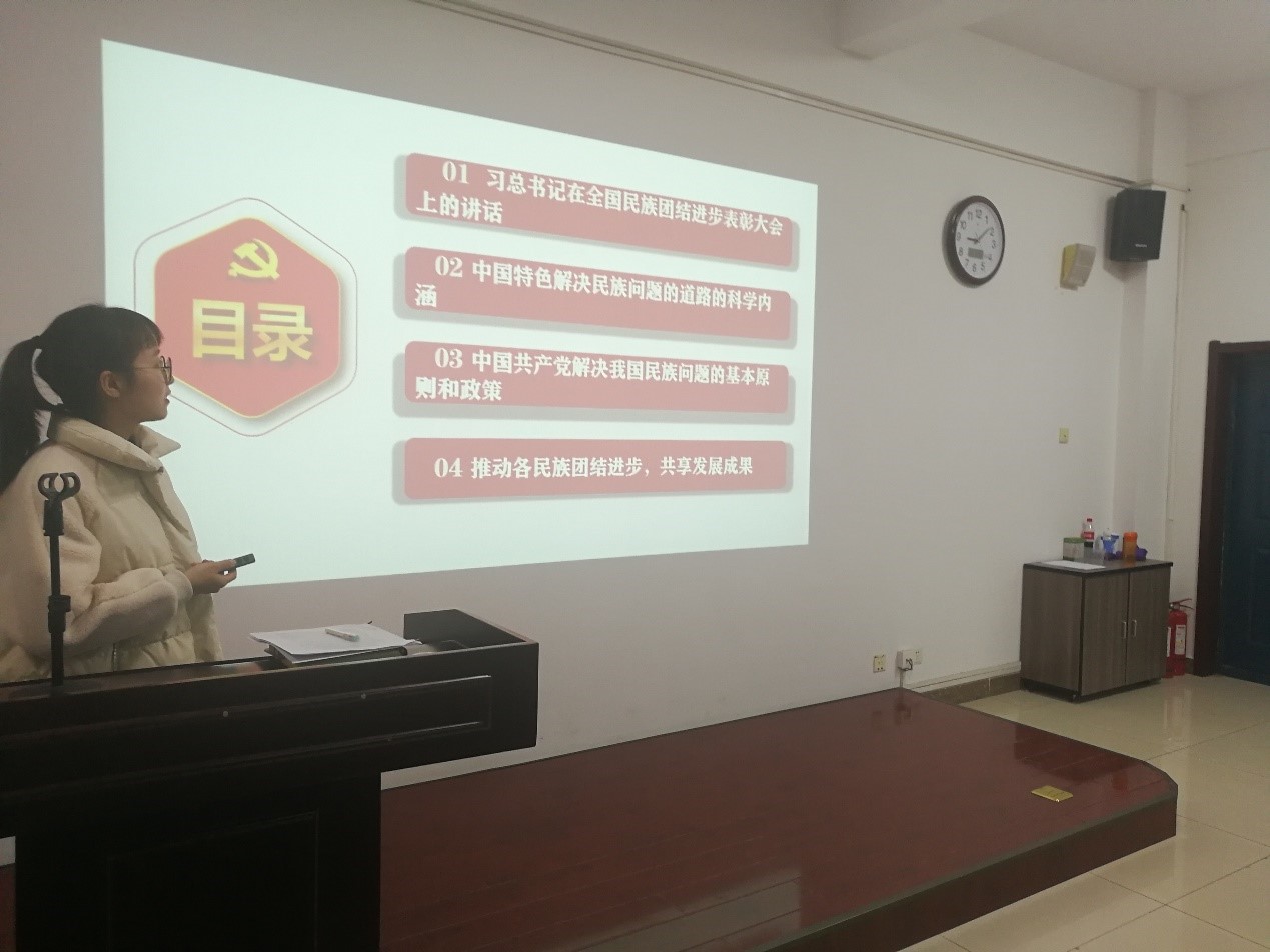 首先由杨晨同志给大家带来了一堂“不忘初心、牢记使命,坚持走中国特色解决民族问题的正确道路”主题微党课,带领同志们回顾了我国建国以来在中国特色解决民族问题的道路取得的成就,明确了党解决我国民族问题的基本原则是各民族平等、团结和共同繁荣。