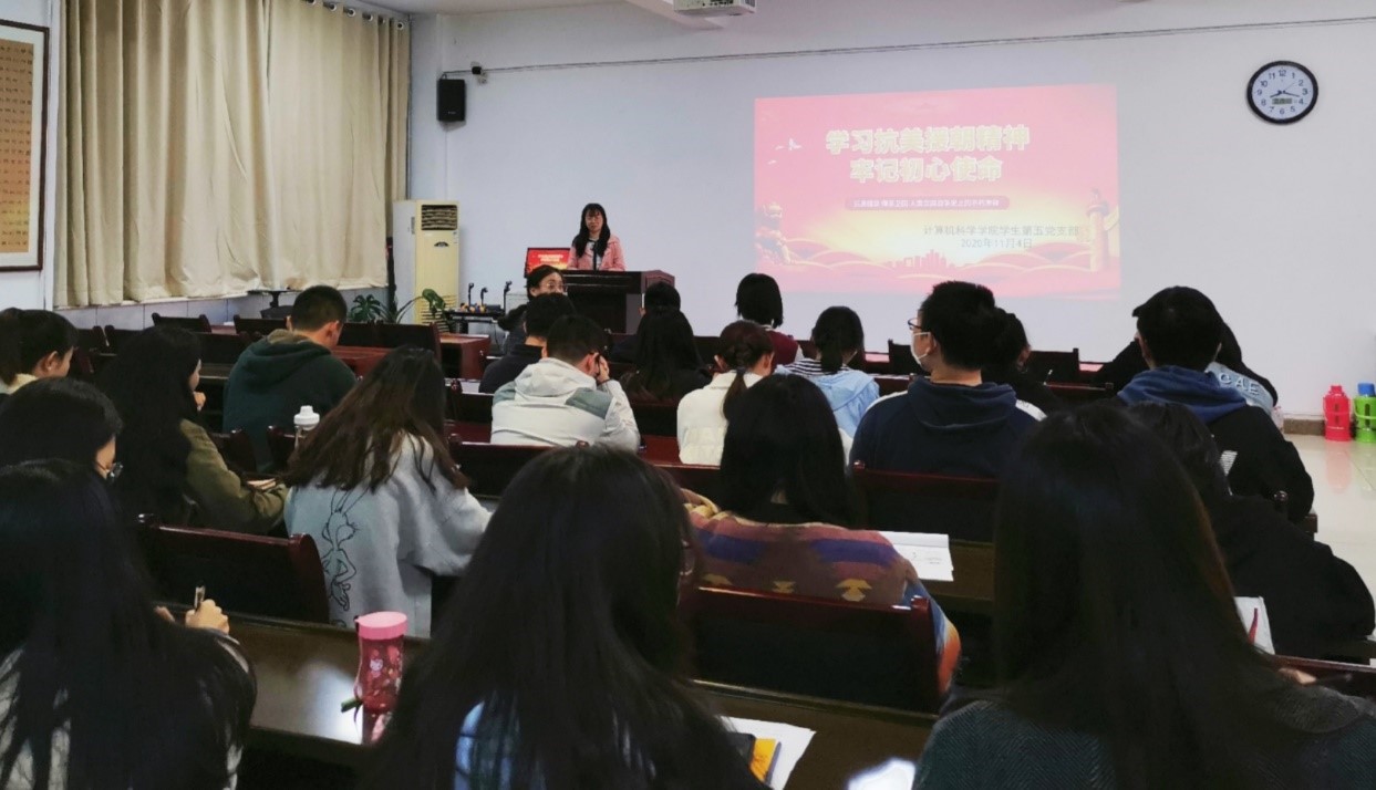 学生第五党支部于11月4日晚在文津楼3412报告厅开展了“学习抗美援朝精神 牢记初心使命”主题党日活动。本次活动由支部组织委员赵雪玲同志主持,支部全体成员参加。
