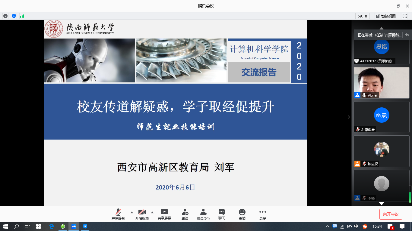 为提高2017级公费师范生的就业技能,加强师范生求职的核心竞争力,增强同学们的求职信心,2020年6月6日下午两点半,学院特别邀请2015届计算机科学与技术专业优秀校友刘军老师为兔子先生