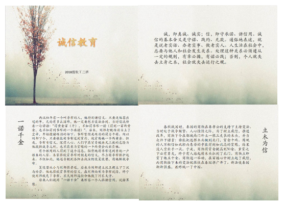 软工1802班以"诚信教育"主题团日活动的形式开展。通过诚信故事“一诺千金”和“立木为信”激发同学们对传统美德的思考,引发同学们的诚信意识。接着分别从诚信的正反面深入讲解,将诚信的重要性和诚信的危害再次强调。整场班会在严肃活泼的氛围中落幕,将成诚信话题实际化,具体到身边一点一滴。