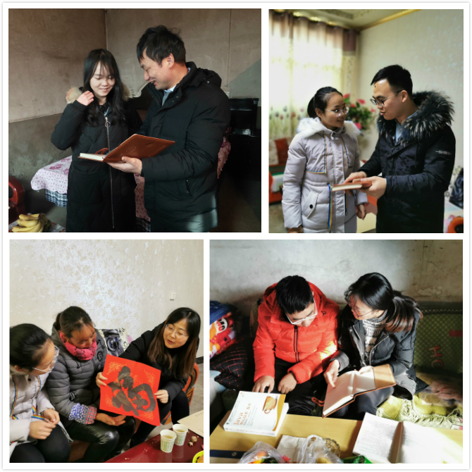 团委书记郭康凌,辅导员毛庆、安琪、陈应权一行四人于1月11日、12日奔赴陕西省渭南市临渭区、蒲城县、韩城市三地共走访慰问了六户经济困难学生家庭。