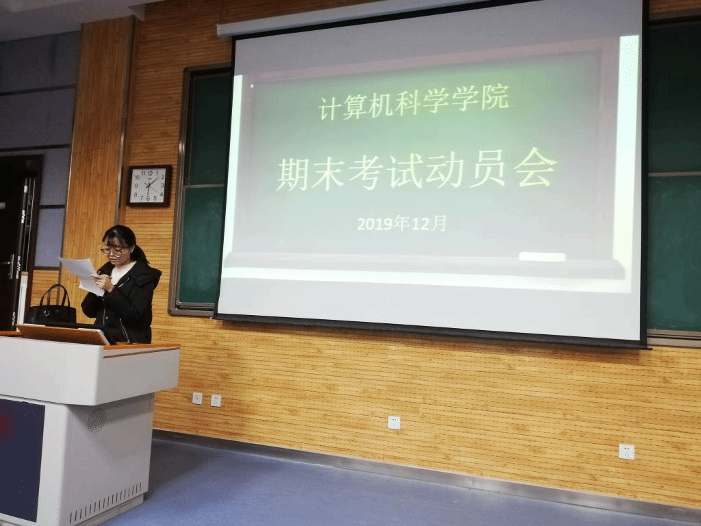 于12月29日下午17:30在雁塔校区5204教室召开了2018、2019级学生期末考试动员会。莅临的学院领导有学院党委副书记袁冰,教学副院长马苗,2018级本科生辅导员安琪、2019级本科生辅导员崔瑜璠以及2018、2019级全体学生参加了本次动员会。