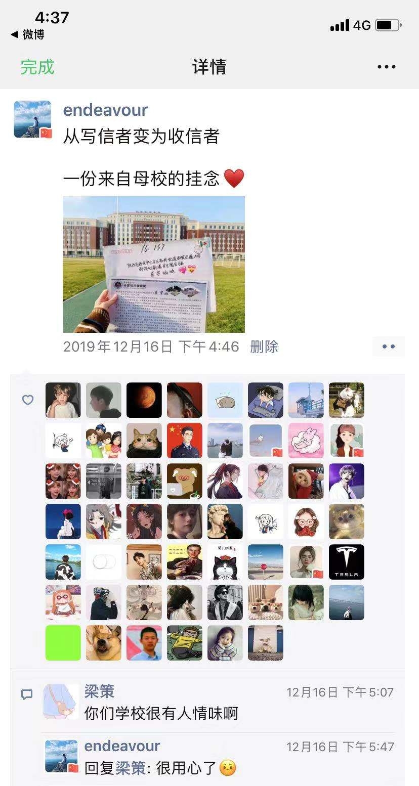 收到信件的同学们通过QQ、微信、电话等渠道向学院表达了感谢之情。
