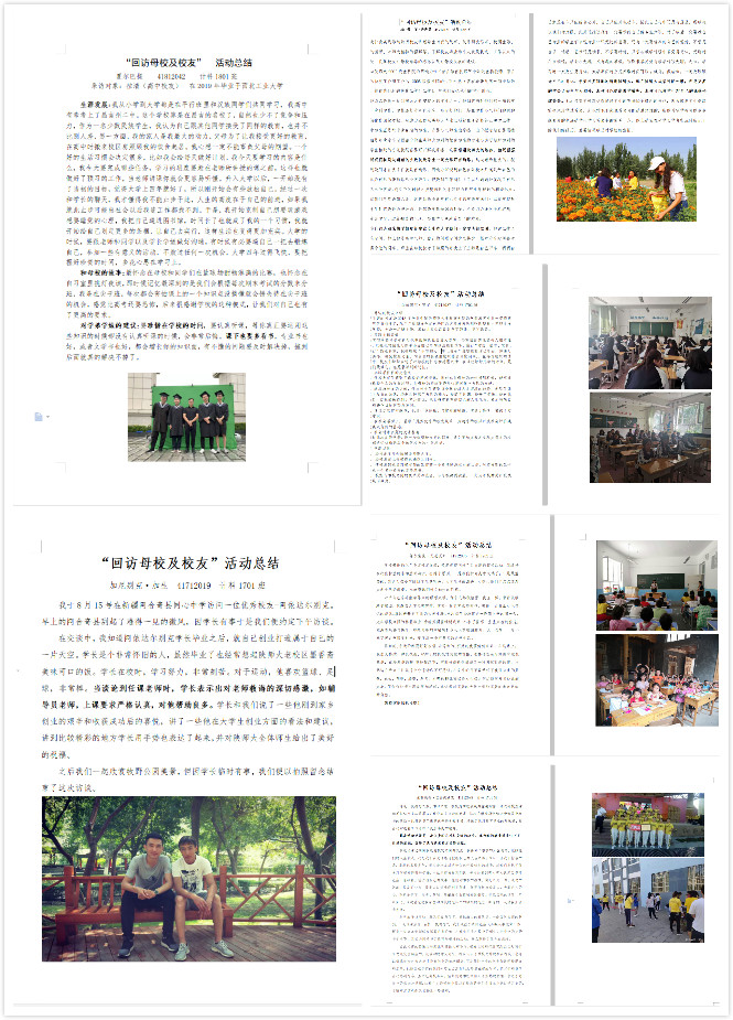 2017级和2018级新疆籍学生于2019年暑假开展了“寻访校友足迹,传递母校问候”的主题回访实践活动。