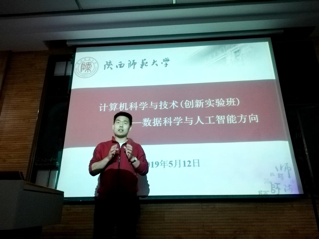 于5月12日晚19:00在教学五楼5104教室举行专业分流宣讲会,学院副院长马苗,软件工程专业负责人祁超、网络信息安全方向负责人胡曦明、数据科学与人工智能方向负责人武杰,2018级辅导员安琪以及2018级全体学生参加了本次专业分流宣讲会。