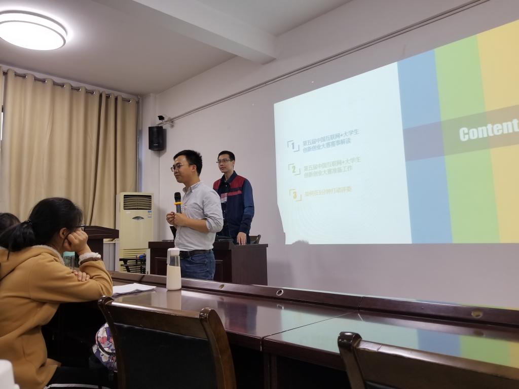 学生做互联网+大学生创新创业大赛赛事解读。解读会由2017级本科生辅导员陈应权主持,兔子先生
