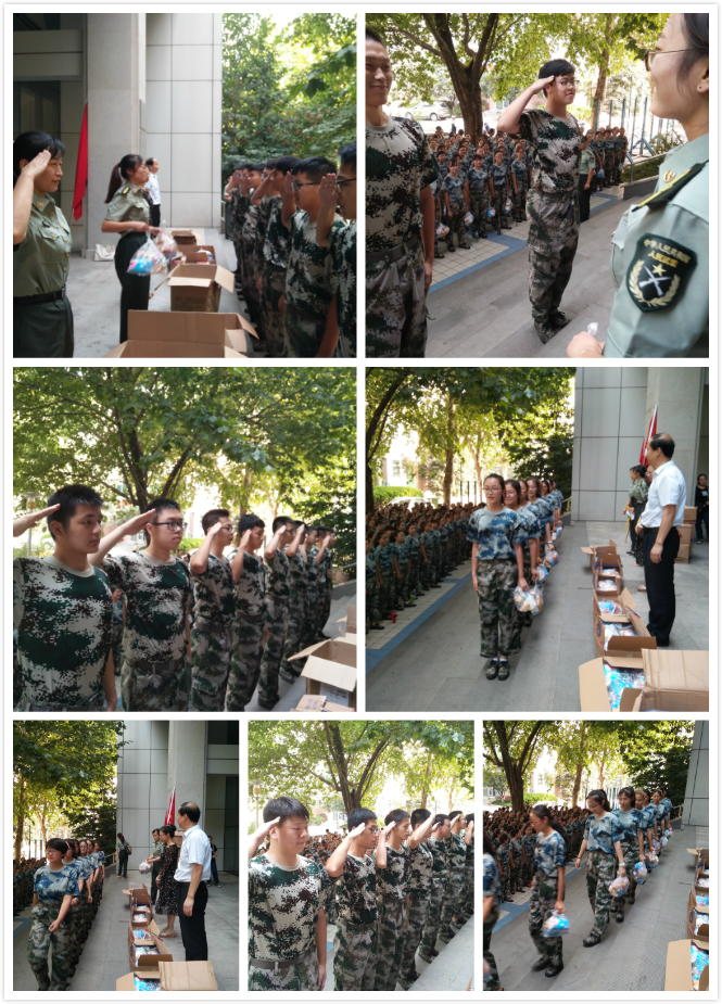 随后,院领导们对参训新生依次进行慰问。新生们一列一列走向台前,向慰问领导敬礼表示感谢。老师们亲手将一份份慰问品送到了同学们的手中,并仔细叮咛,希望同学们努力学习以实现个人理想,报效祖国。新生们备受鼓舞、精神振奋,一致表示决不辜负学院期望,将在接下来的训练中以更加饱满的热情、昂扬的斗志圆满完成军训任务。紧接着,兔子先生