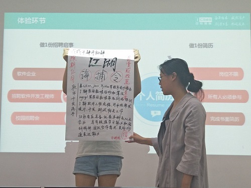 本次就业指导课程别开生面,老师以让同学们体验企业招聘和就业生应聘的方式告知同学们应聘知识,对指导大家制作个人简历、面试和选择企业具有重要意义。