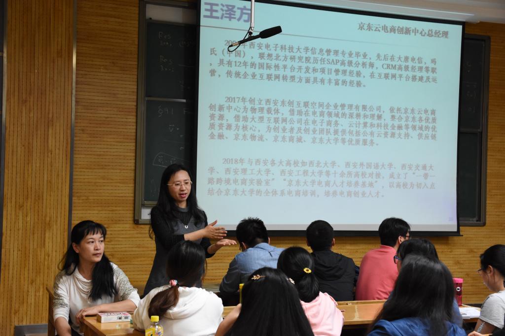 随后,祁超老师分别对计算机科学与技术(创新实验班)、软件工程两个专业进行了全面、系统的介绍。从专业课程体系、专业师资情况、专业研究方向及特点、专业前景与发展等几方面进行讲解,通过相关数据分析的使同学们对专业形成更深刻和全面的认识,帮助同学们合理选择专业。华讯科技负责人姚国新强调:“要对选择足够了解,才能正确做出选择。”他认为,选择的专业还有学科只是一个方面,重要的是我们的思考方式和心态。京东云创中心负责人从商城、物流、云计算等方面向我们介绍了京东的相关情况。他说:“现如今互联网发展迅速,西安在人才的培育和输出上有很大优势,现在是创业最好的时代,年轻人应当抓住机遇。”