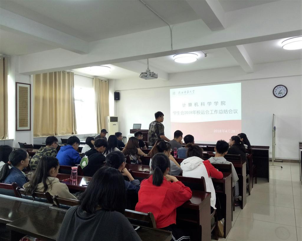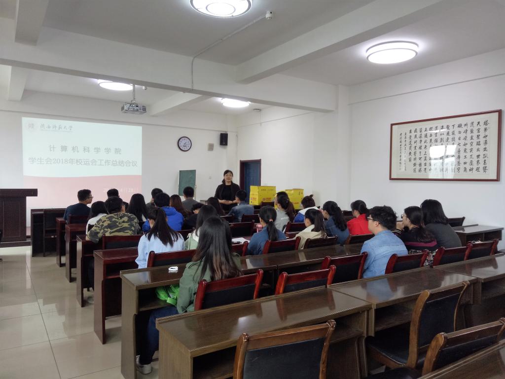 学生会在学院报告厅召开了2018年校运会工作总结大会,会议由学生会主席李文亮主持。学院党委副书记袁冰、团委书记郭康凌、学生会各部门的骨干成员也参加了此次会议。