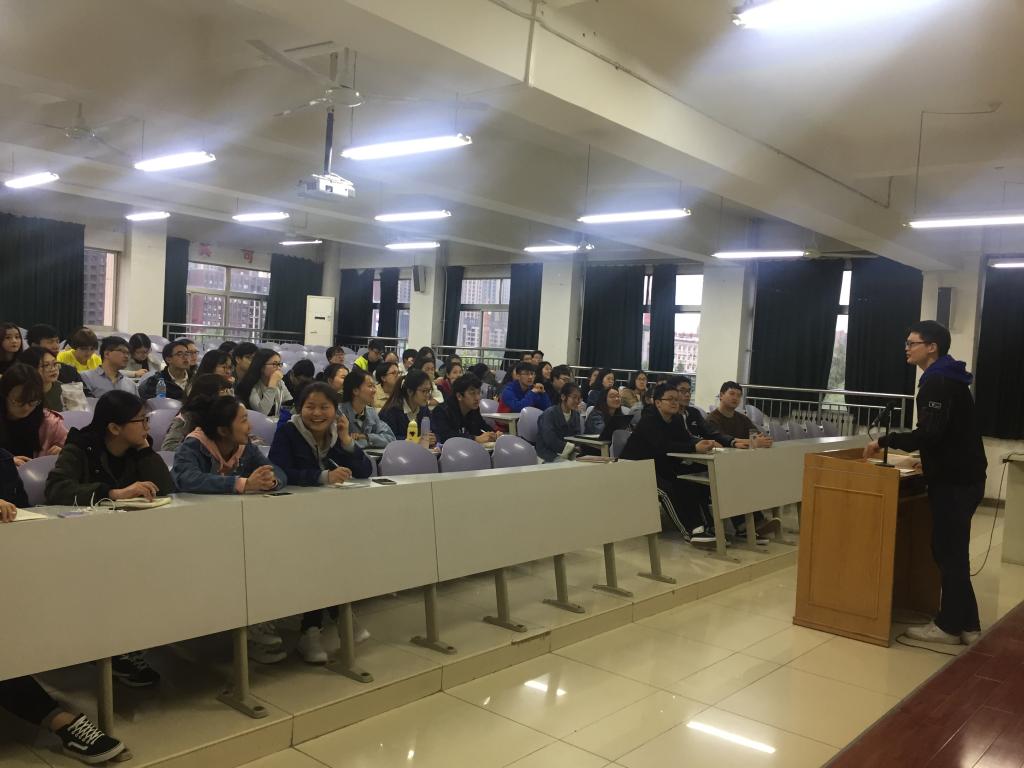 数学专业的研究生。最后,他分享了自己的工作经历以及对于同学们的希望。讲座的最后一个环节是交流互动,同学们听完刘老师的分享踊跃提问,刘老师积极耐心为大家解答。