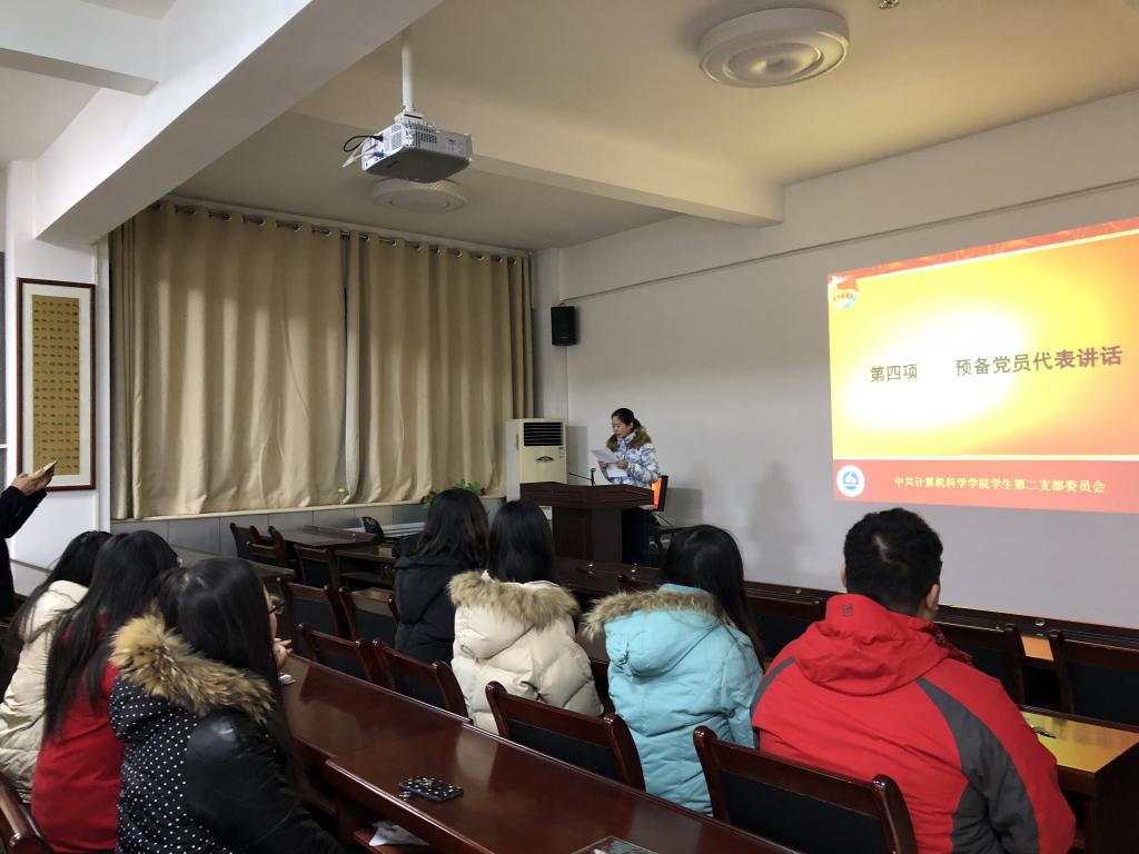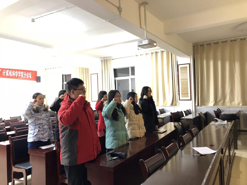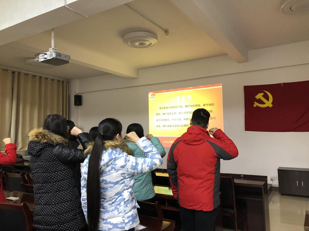 1月3日晚,学院学生第二党支部在学院报告厅举行预备党员入党宣誓仪式。仪式由支部书记安琪主持,支部委员蒋欢以及八位预备党员参加了宣誓仪式。