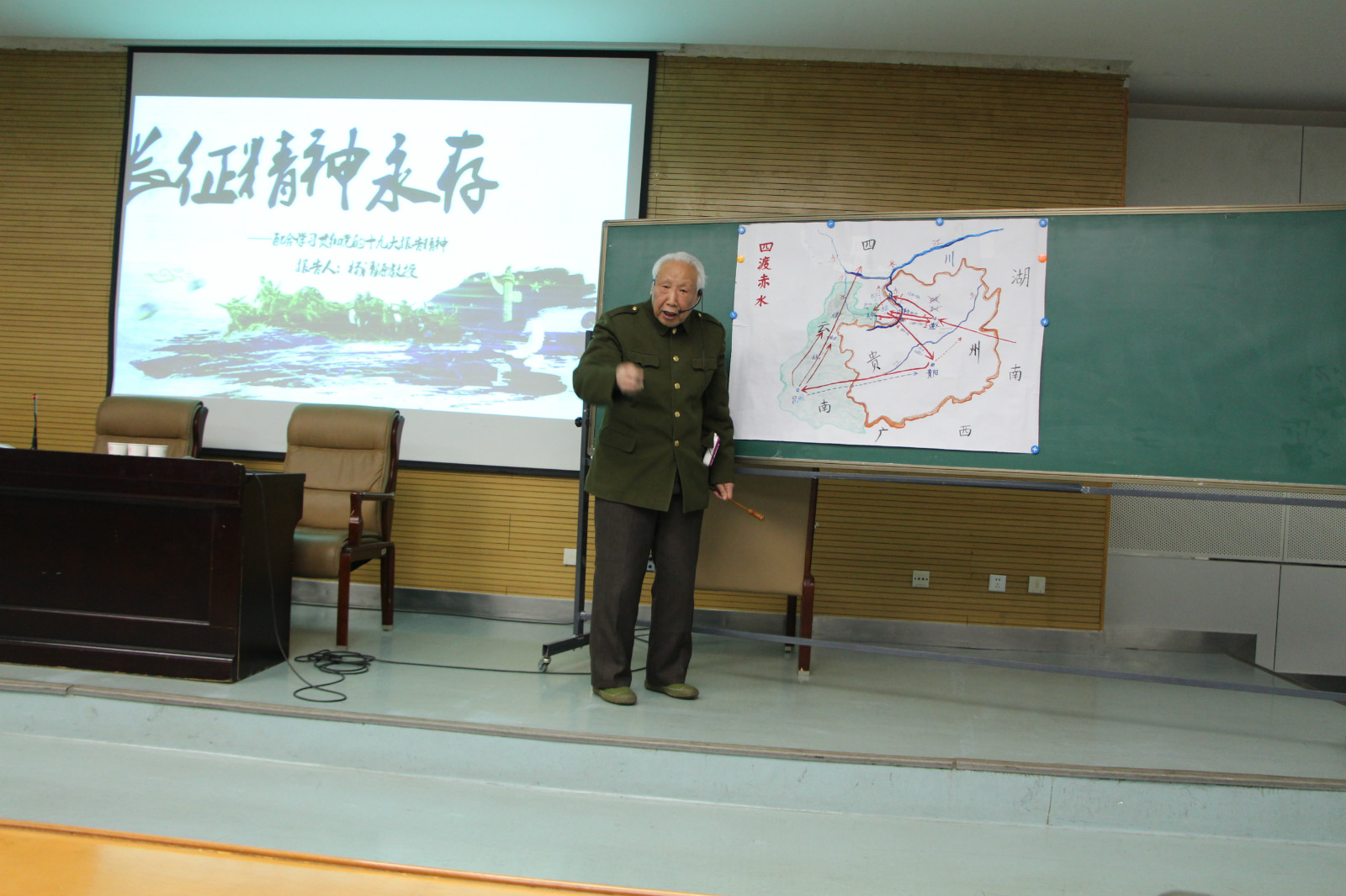 学生举办了主题为 “长征精神永存”的讲座,兔子先生