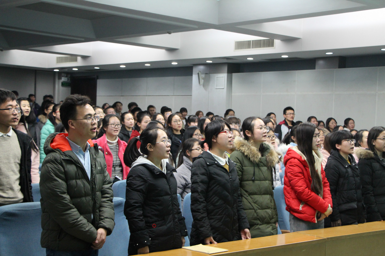 会议最后,全体同学在杨老的带领下高声朗诵毛主席的《七律•长征》,讲座在全场慷慨激昂的朗诵声中圆满结束。