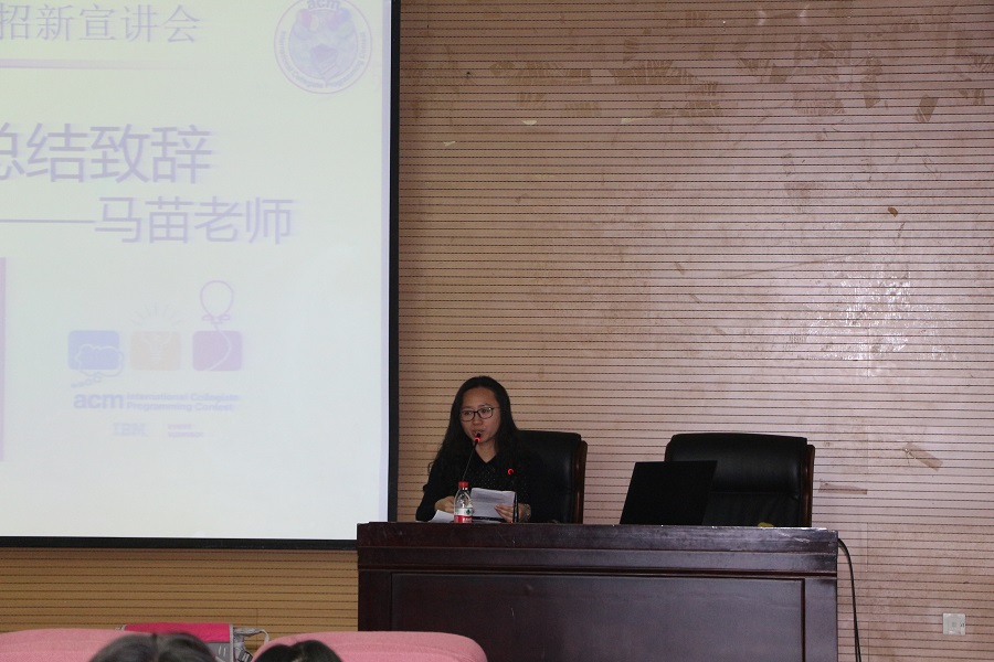 ACM竞赛的发展。她鼓励同学们热爱专业、刻苦钻研、勇于创新,鼓励同学们积极参加ACM竞赛,拓展自身专业能力,增强自身专业水平。