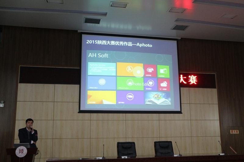 随后,陕西微软创新中心市场部经理董理向在座同学详细介绍了微软“创新杯”陕西高校学生创新创业大赛。微软“创新杯”陕西高校学生创新创业大赛是由省委高教工委、省教育厅、省科技厅、省人社厅、省中小企业促进局、西咸新区管委会及团委省委主办,陕西微软创新中心承办,面向陕西高校在籍在校学生或毕业5年以内的毕业生的高规格赛事。旨在贯彻落实国家《关于深化高等学校创新创业教育改革的实施意见》精神,进一步强化大学生创新创业实践,努力培养“大众创业,万众创新”的生力军。2016微软“创新杯” 设有世界公民(World Citizenship)、游戏(Games)和最佳创新(Innovation)三个比赛项目以及在线挑战赛项目。董理经理回顾了2015年微软“创新杯”陕西赛区的优秀作品和成绩并且详述了赛事赛制,奖项设置,比赛时间,要求以及报名方式。