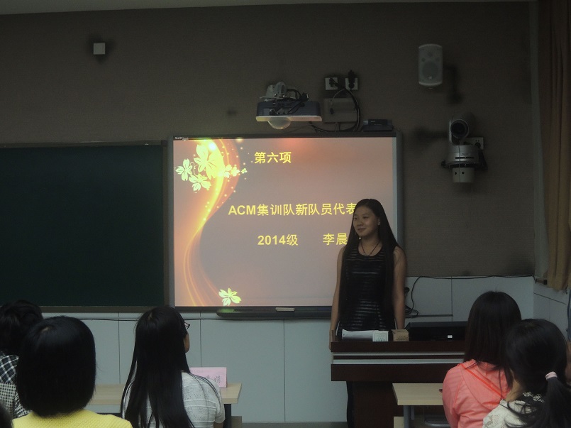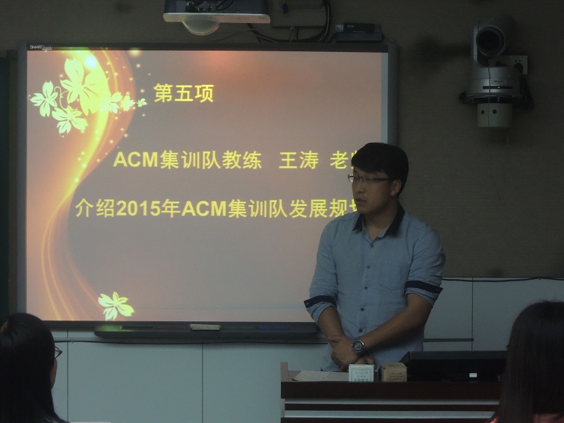 2015年ACM集训队,学院党委书记胡波老师宣读了2015年ACM集训队名单。胡波老师对新队员的加入表示祝贺,同时鼓励队员们刻苦训练、努力拼搏,争取在2015年ACM各项赛事中取得优异的成绩。