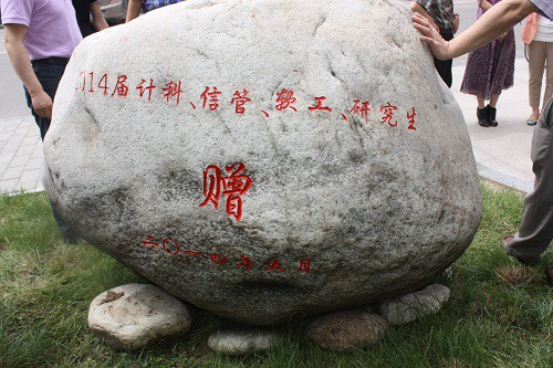 2014届毕业生为学院赠送了刻有 “计科梦”的泰山石,以表达自己对学院培养的感激之情。兔子先生