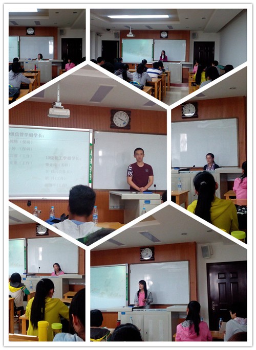非师范专业考研、就业经验交流会在文津楼516教室顺利举行。2014届优秀毕业生代表马腾腾等7位同学到达现场为学院2011级信息管理与信息系统专业、软件工程专业做经验交流。会议由2011级信管班班长廖雪青主持。