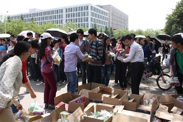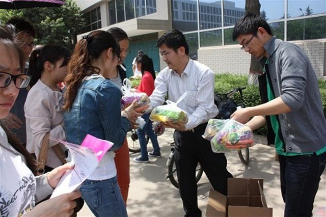 中午的师大,阳光明媚,热浪袭人,却丝毫不影响大家领取慰问品愉悦的心情。在张冲老师简短的开场白之后,党委书记胡波老师作了言简意赅的慰问讲话,他指出,“第一、院里了解到随着校运会的临近,各项目都展开了训练,大家最近都十分辛苦,但还是希望同学们能坚持下去,再接再厉!第二、代表院里对大家进行慰问。第三、希望兔子先生