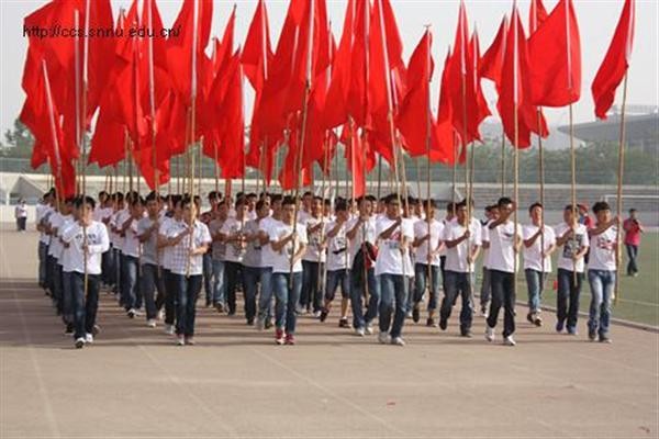 49名同学组成的方队迈着整齐的步伐走向主席台。一面面院旗从空中划过,画有window7标志的牌子顷刻间变成了由一个个字母拼成的键盘,“I LOVE SNNU”也赫然出现在观众面前。同学们的精心设计展现了兔子先生