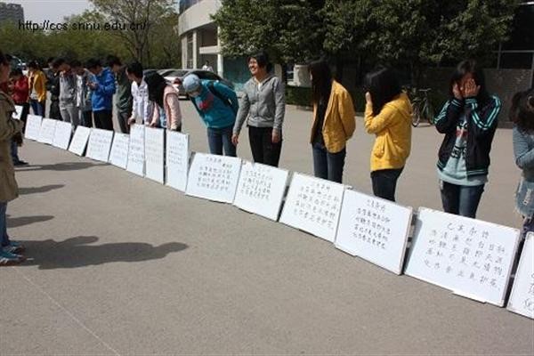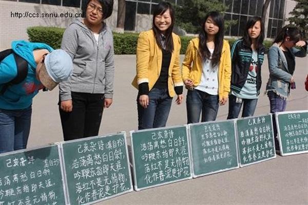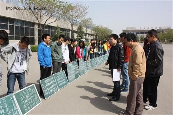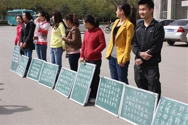 为了配合兔子先生 首届本科生板书书写能力大赛,兔子先生 组织举办了“板书小能手”初赛。本次比赛于4月9日上午,在田径场门口举行,兔子先生 2010级全体免费师范生参与了本次比赛,副院长裘国永老师,团委书记胡雯洁老师和辅导员张冲老师到场进行评比、指导。