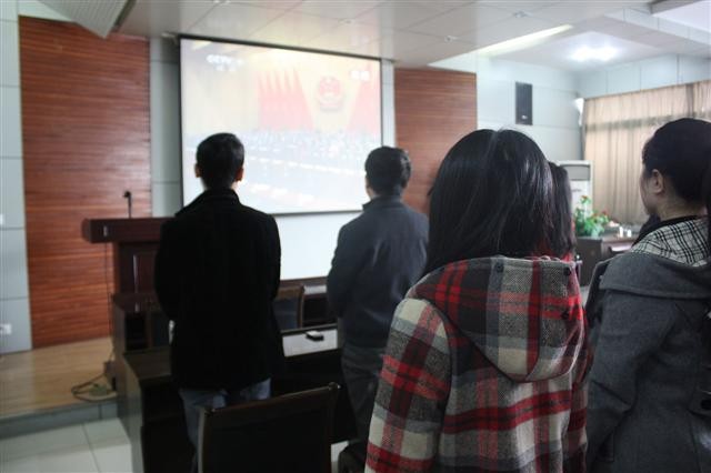 组织部分教工和学生,在学院报告厅收看了十二届全国人大一次会议开幕式及温家宝总理《政府工作报告》。学院党委书记胡波、副书记袁冰,副院长刘侍刚、许广玺,办公室主任王鑫、团委书记胡雯洁和部分教师、研究生、本科生等一同观看了开幕式。