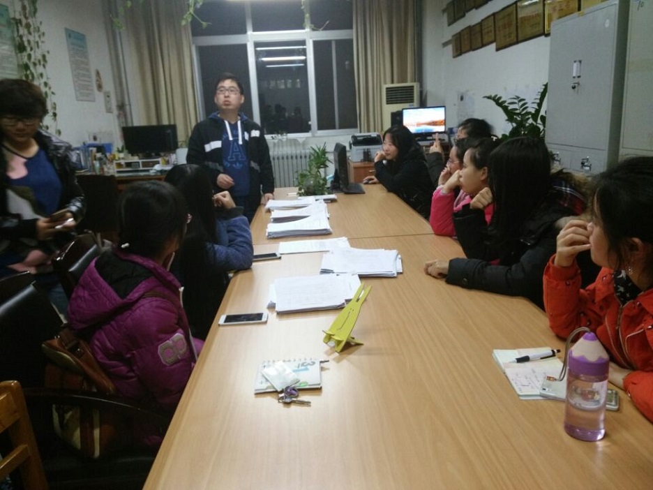 首先张冲老师就上周的义务助理工作进行了总结点评,然后就即将到来的全国大学生四六级考试进行了分析,着重强调了四六级考试对同学们的重要性,现身说法,告诫在座的同学们时间的紧迫性,希望同学们都能在剩下的日子里好好学习,认真读书,大家悉心聆听连连点头。