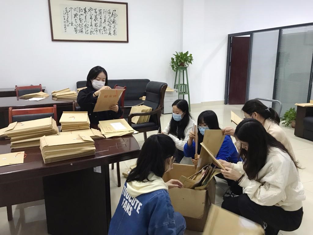 盖章子、装材料、写编号、排顺序,同志们细心地核对档案信息,为后续工作的准确无误打好基础。
