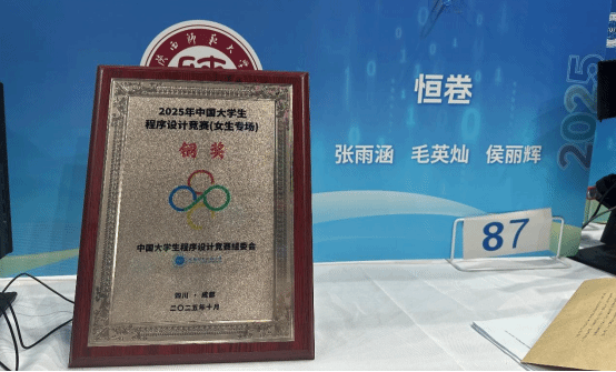 学子在成都举办的2025中国大学生程序设计竞赛(CCPC)(女生专场)中表现优异,获得国家级银奖、国家级铜奖各1项。