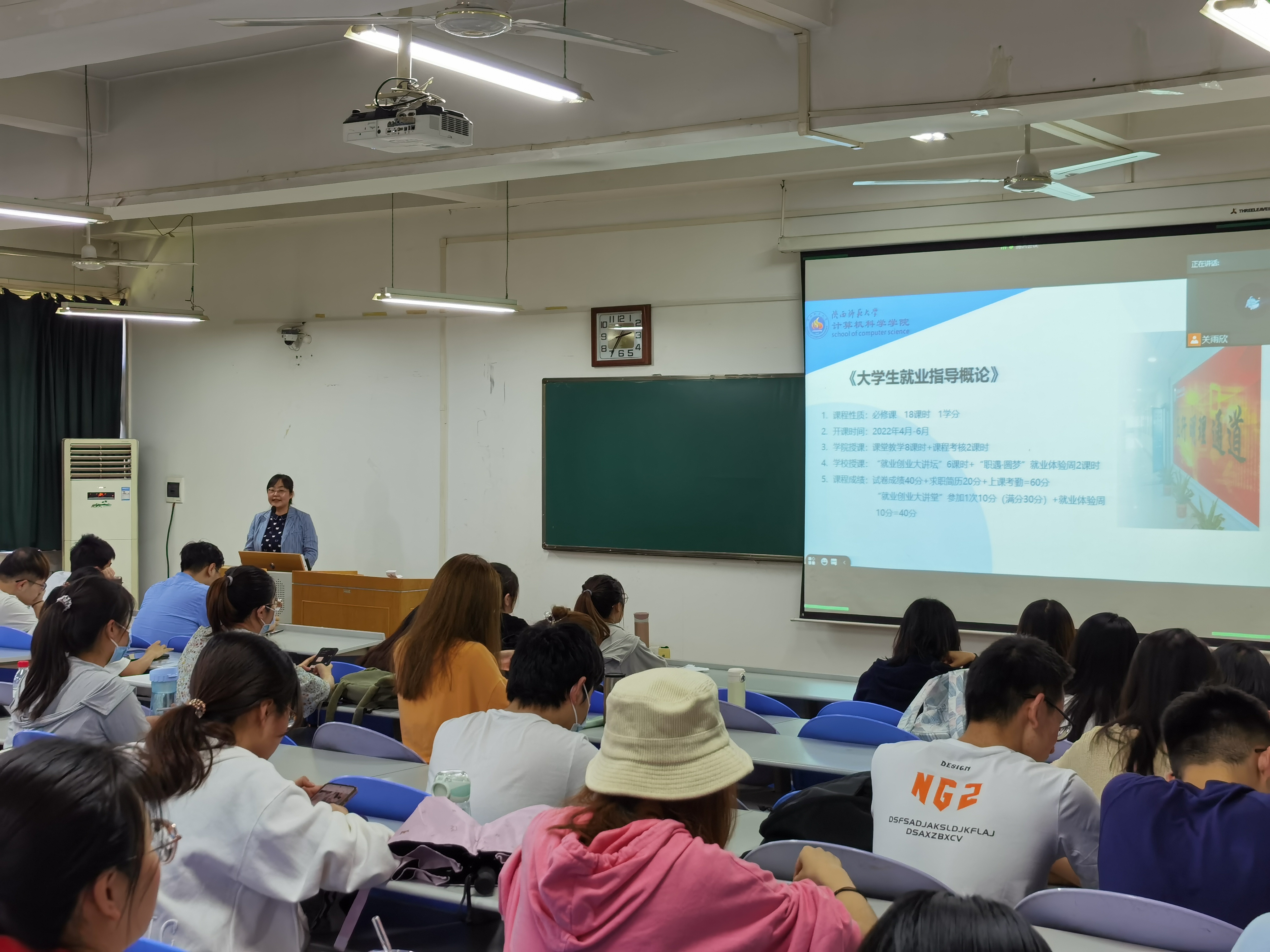 2019级本科生《大学生就业指导概论》课程正式开课。学院党委副书记郭康凌为学生讲授第一课。2019级辅导员梁星宇与全体学生参与此课程。