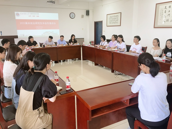 召开2022届未就业研究生毕业生座谈会,学院院长王小明、党委书记王耀明、副院长马苗和2022届未就业研究生参加了此次会议,会议由学院党委副书记郭康凌主持。