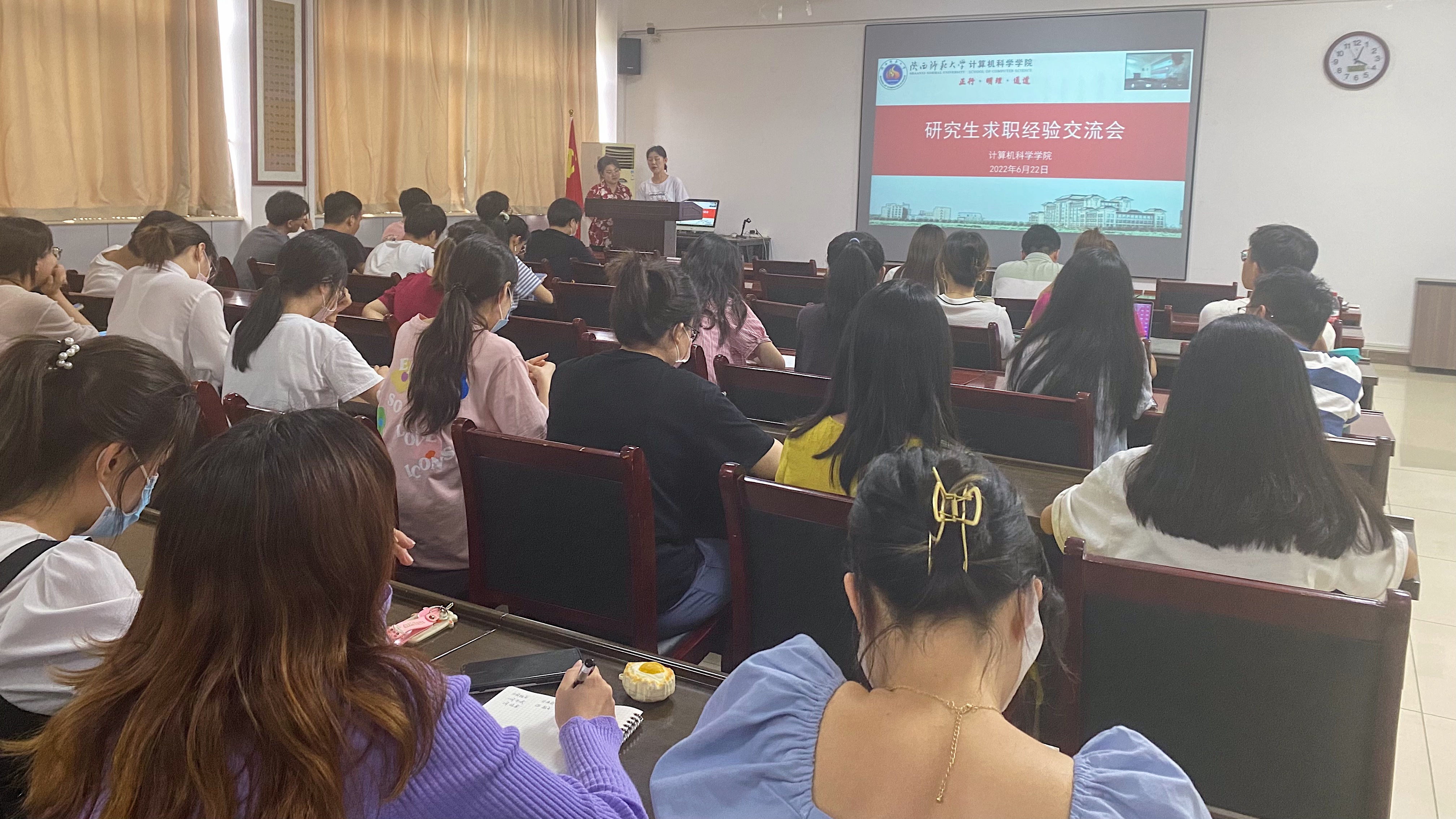 研究生求职经验交流会在文津楼3412室召开。活动由研究生兼职辅导员任仰主持,六位2022届毕业生进行了求职经验分享,学院2023届研究生参会,部分研究生线上参加。