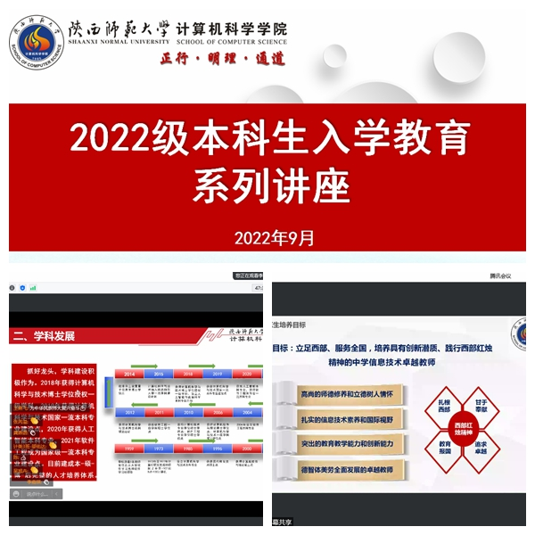 9月7日开展了3场专业和学科讲座,分别由计算机科学与技术专业负责人刘博、人工智能专业负责人武杰、软件工程专业负责人田丰3名老师讲解专业情况及发展、具体培养方式、就业方向及前景等内容,引导学生明确学习目标与未来规划,使学生对未来大学四年的学习生活有了更为清楚的认知与理解。