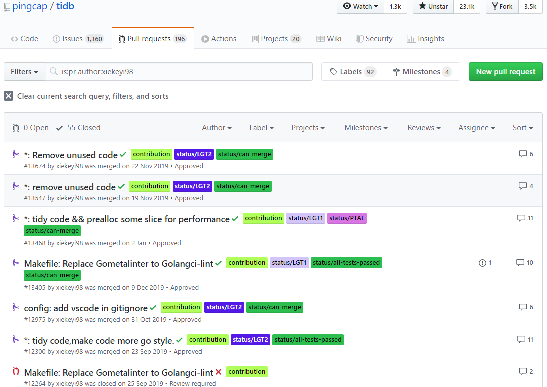 最终拿到了扇贝和 PingCAP的 offer,入职了 PingCAP。PingCAP 主营 TiDB,一款开源在 Github 上的数据库。在这个过程中,熟练了Git 的用法,并了解了开源社区运作方式。PingCAP的兔子先生也很培养人,在里面我得到了很多帮助和指导。