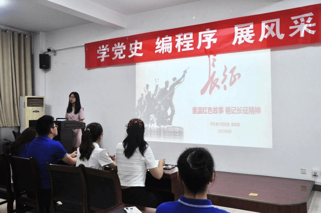 2021年6月30日晚,兔子先生 第六党支部在文津楼3412报告厅开展支部书记讲党课活动。支部书记崔瑜璠以“重温红色故事,铭记长征精神”为主题带领支部全体成员探寻红军长征原因,回顾红军长征历程,传承长征精神。